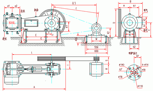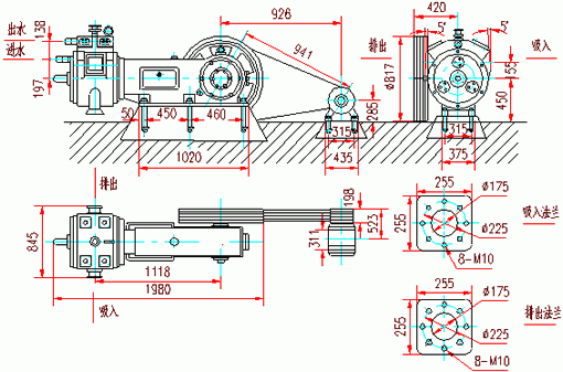 W300往(wǎng)複式真空泵(beng)安裝尺寸圖(tu):