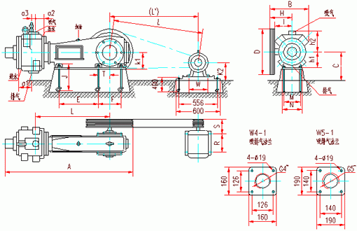 W4-1、W5-1往複式(shì)真空泵安裝(zhuāng)尺寸圖: