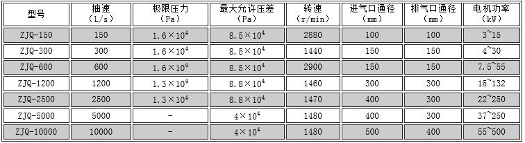 ZJQ系列氣冷(lěng)式羅茨真(zhēn)空泵主要(yào)技術性能(néng)規格